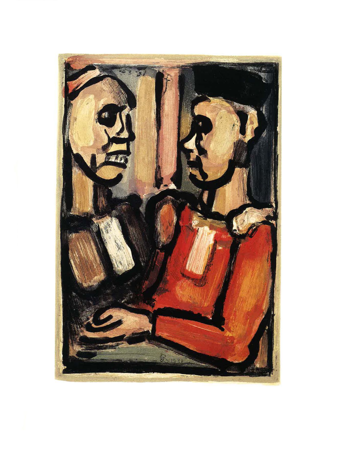 Georges-Henri Rouault (1871-1958) est un peintre et graveur français. Avec les peintres Henri Matisse et Albert Marquet, Rouault fonde le Salon d'automne en 1903 et fait la connaissance de Léon Bloy dont l'œuvre le touche profondément et de façon durable. Profondément catholique, il reconnaît dans cette humanité souffrante le visage du Christ qu’il recherche dans de nombreuses toiles évoquant sa "Passion". Dès 1910, les collectionneurs et les marchands reconnaissent la grande force de son œuvre, notamment Maurice Girardin ou Ambroise Vollard qui, en 1917, lui achète l'ensemble des toiles de son atelier, soit 770 œuvres. Après la mort de Vollard (1946), il se trouve en procès avec les héritiers, mais le Tribunal lui reconnaît la propriété de ses œuvres. En 1948 Georges Rouault brûle, en présence d'un huissier, 315 de ses tableaux et arrête de peindre en 1957. À sa mort, en 1958, le gouvernement français décide de lui faire des obsèques nationales l'EgliseSaint-German-des-Prés à Paris.